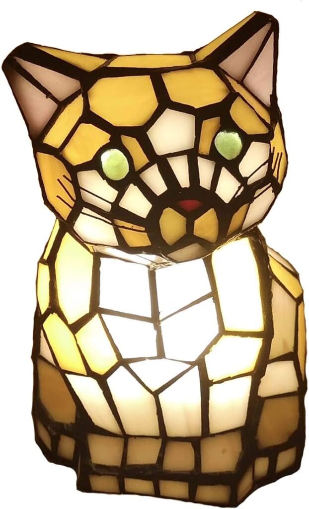 Cute Cat Waits for Someone to Play with Tiffany Style Stained Glass Accent Table Lamp Night Light for Home Decoration (One Cat, Yellow)