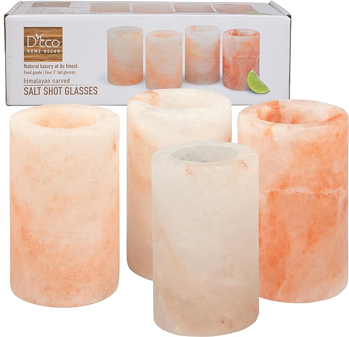 Himalayan Salt Shot Glasses (4 Pack) – Hand-Carved 3″ All-Natural Pink Salt Tequila Shooters – Add light salt flavor to any drink without the mess – Holiday Party Exchange & Christmas Gift Idea
