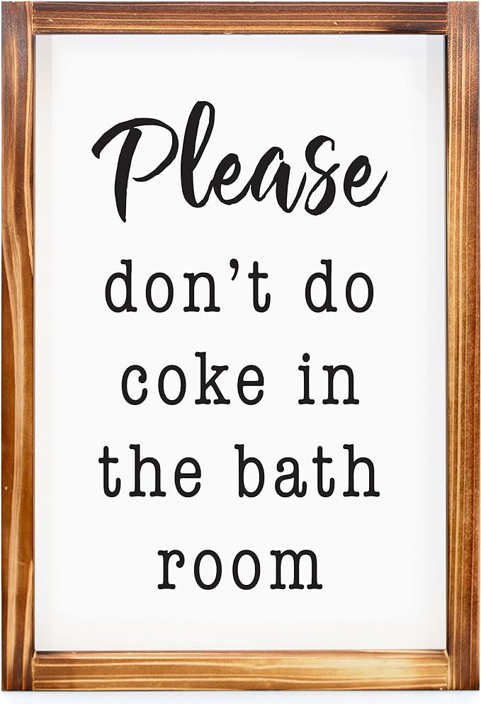 Please Dont Do Coke in the Bathroom Sign 11×16 Inch, Wall Signs Home Decor, Family Sign Home Decor Wall Don’t Do Coke Wood Wall Art Dont Do Coke in the Bathroom Sign Wooden Frame Quotes Wall Decor
