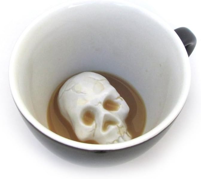 SKULL Ceramic Cup (11 Ounce, Black Exterior) | Hidden 3D Creature Inside Mug Emerges As You Drink | Spooky Creepy Coffee & Tea Cup
